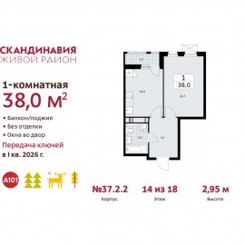 1-комн. квартира в ЖК "Прокшино" на 11 этаже. Квартира без отделки, полностью готова к чистовой отделке и дальнейшему ремонту. Общая площадь: 36.2 кв.м., жилая: 15.3 кв.м., площадь просторной кухни-столовой: 9.5 кв.м. Угловая квартира, идеально подойдет любителям тишины и панорамных...