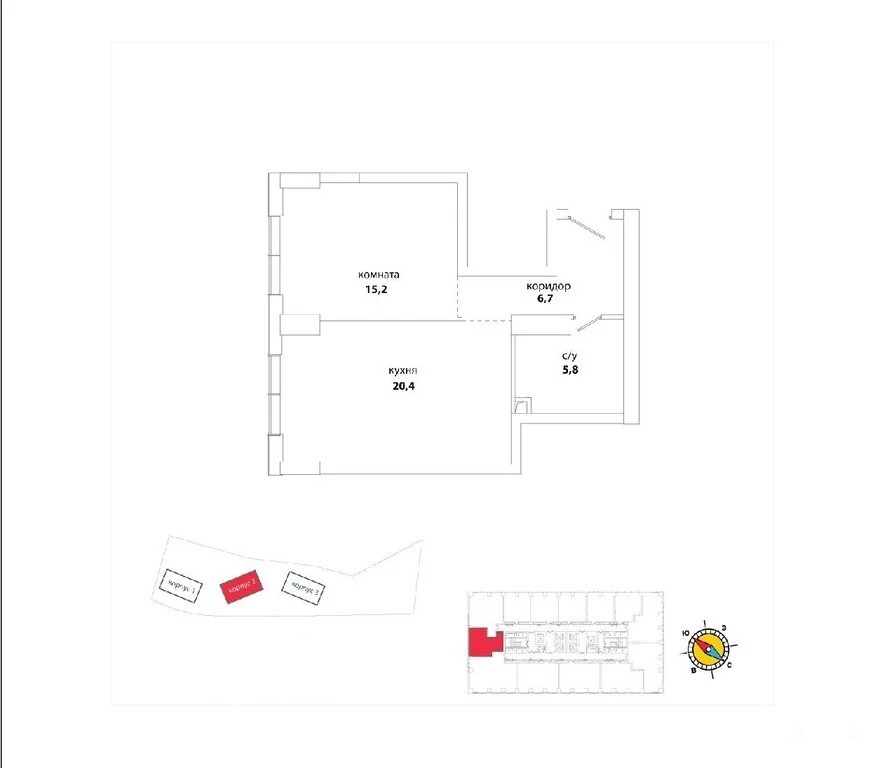 - планировка: спальня, кухня-гостиная, совмещенный санузел;