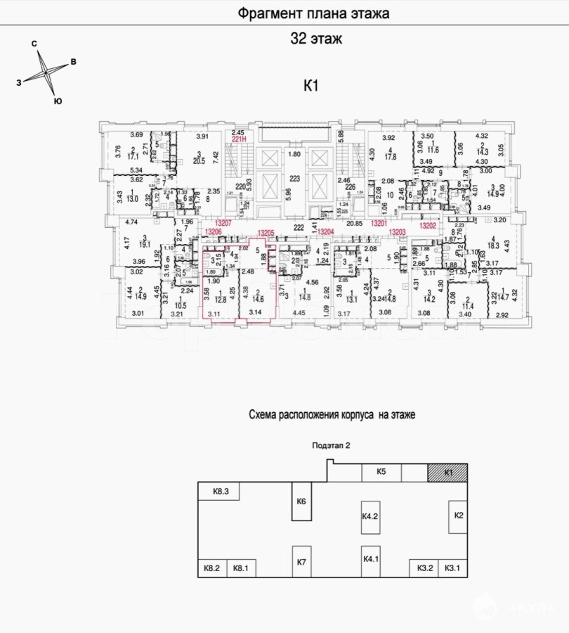 32 этаж из 52 | Площадь - 39, 8 м² | Южная сторона | Предчистовая отделка от MR Group - White box