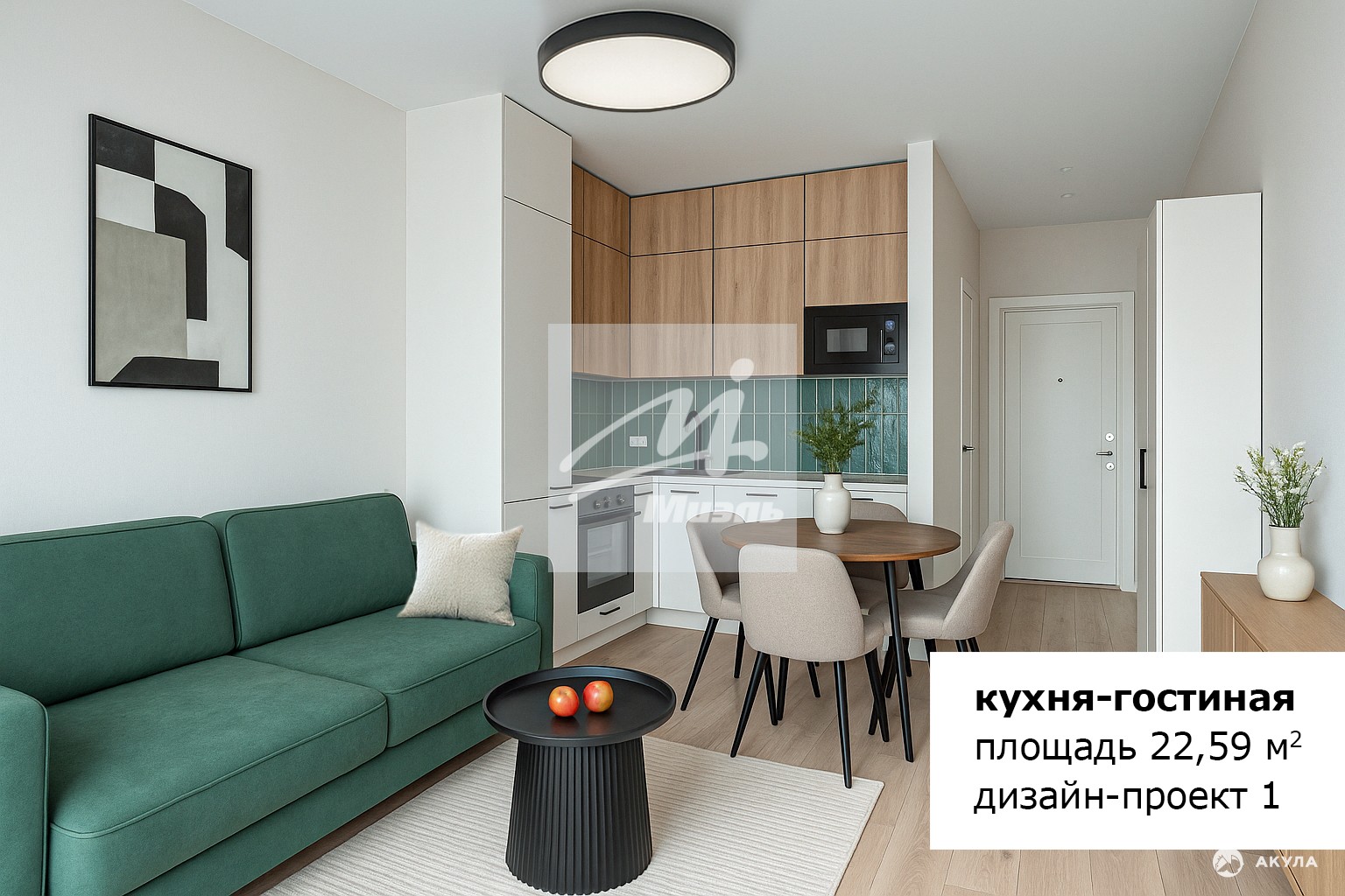 ‒ Удобная планировка включает просторную кухню-гостиную, ванную комнату и прихожую. Эркерные окна выходят на улицу, обеспечивая обилие естественного света
