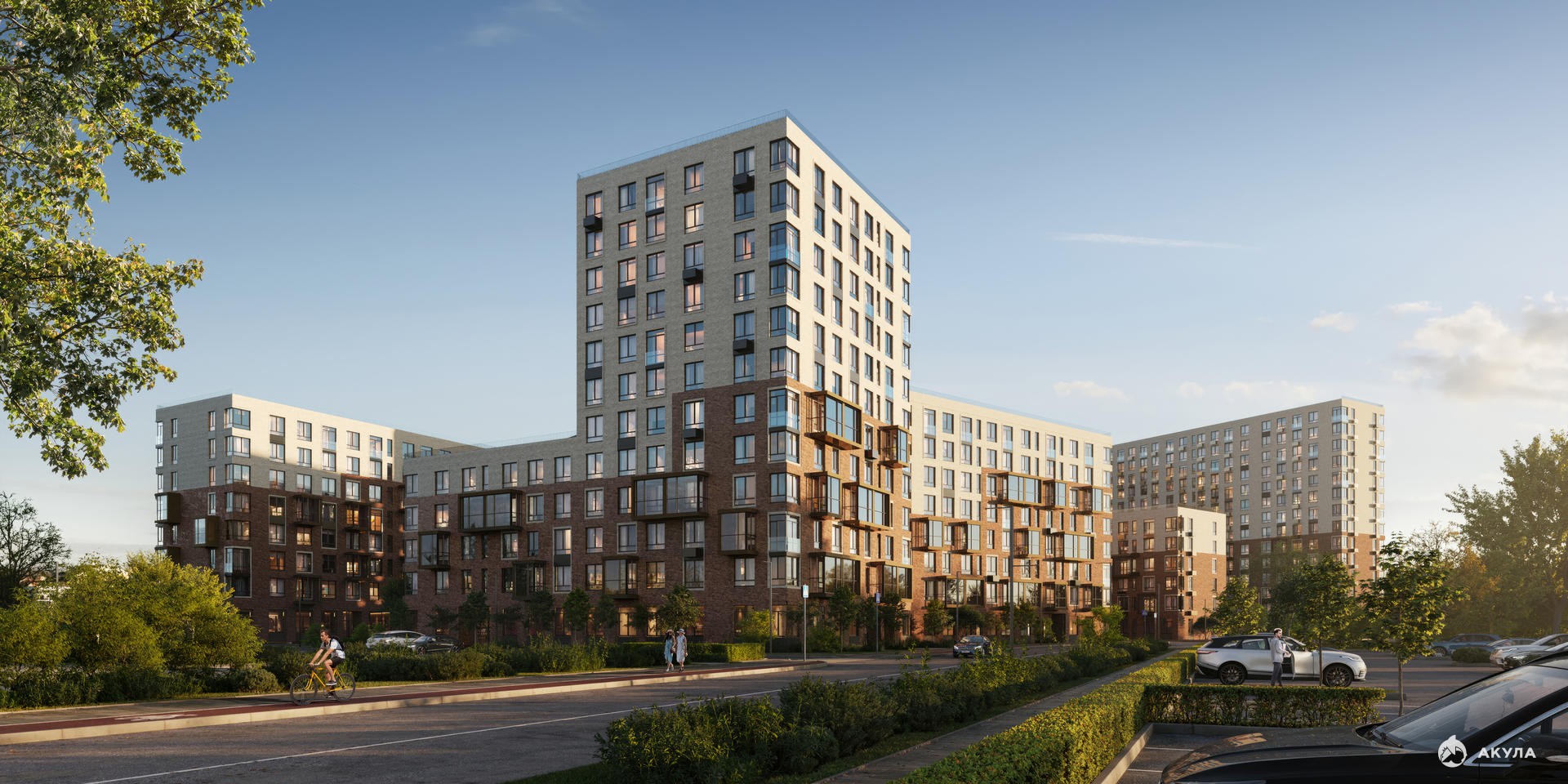 Высота домов — от 5 до 15 этажей. Фасады выполняют в естественных оттенках, в соответствии с дизайн-кодом «Полевой луг». У каждой секции — свое цветовое решение. Белый цвет верхних этажей добавляет застройке легкости. Фасады облицованы клинкерным глазурованным кирпичом, который используют в проектах бизнес-класса.#yan19-2r1654496#