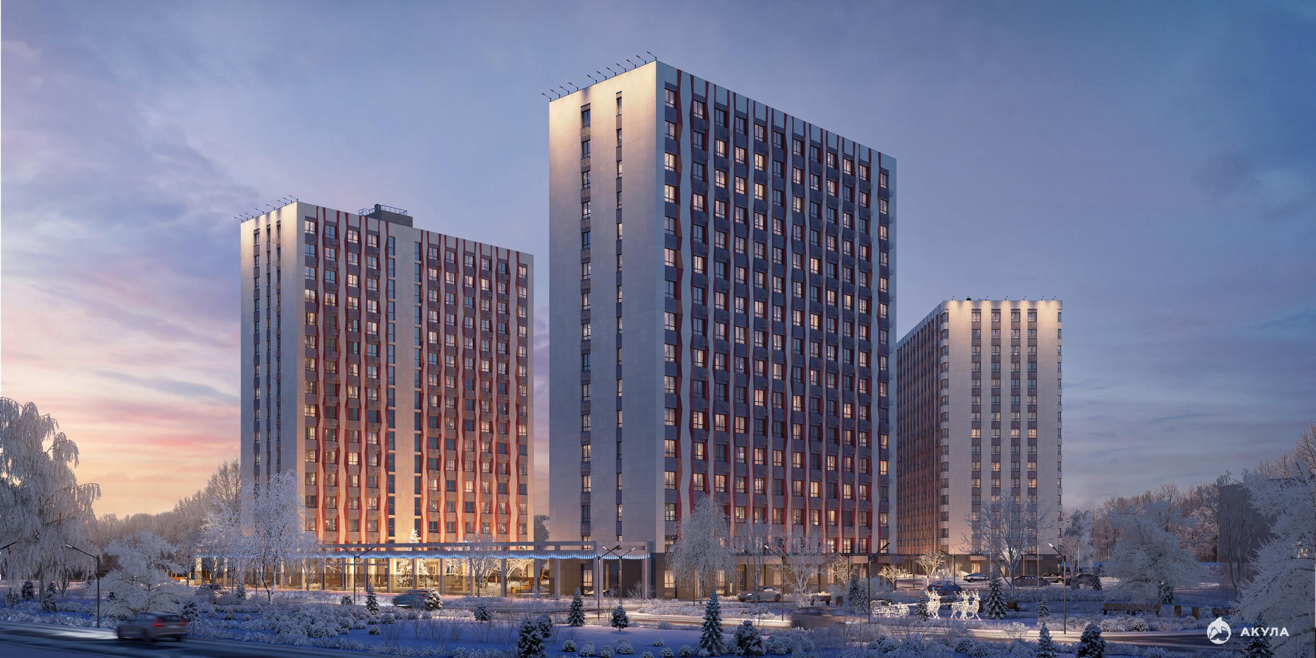 Это 3 дома высотой 16 этажей с приватными зелеными дворами. Территория квартала граничит с зеленой рощей, а через дорогу — лесопарк для ежедневных прогулок. Рядом 7 фитнес-клубов, магазины, кафе, медицинские центры, а также школы и детские сады.