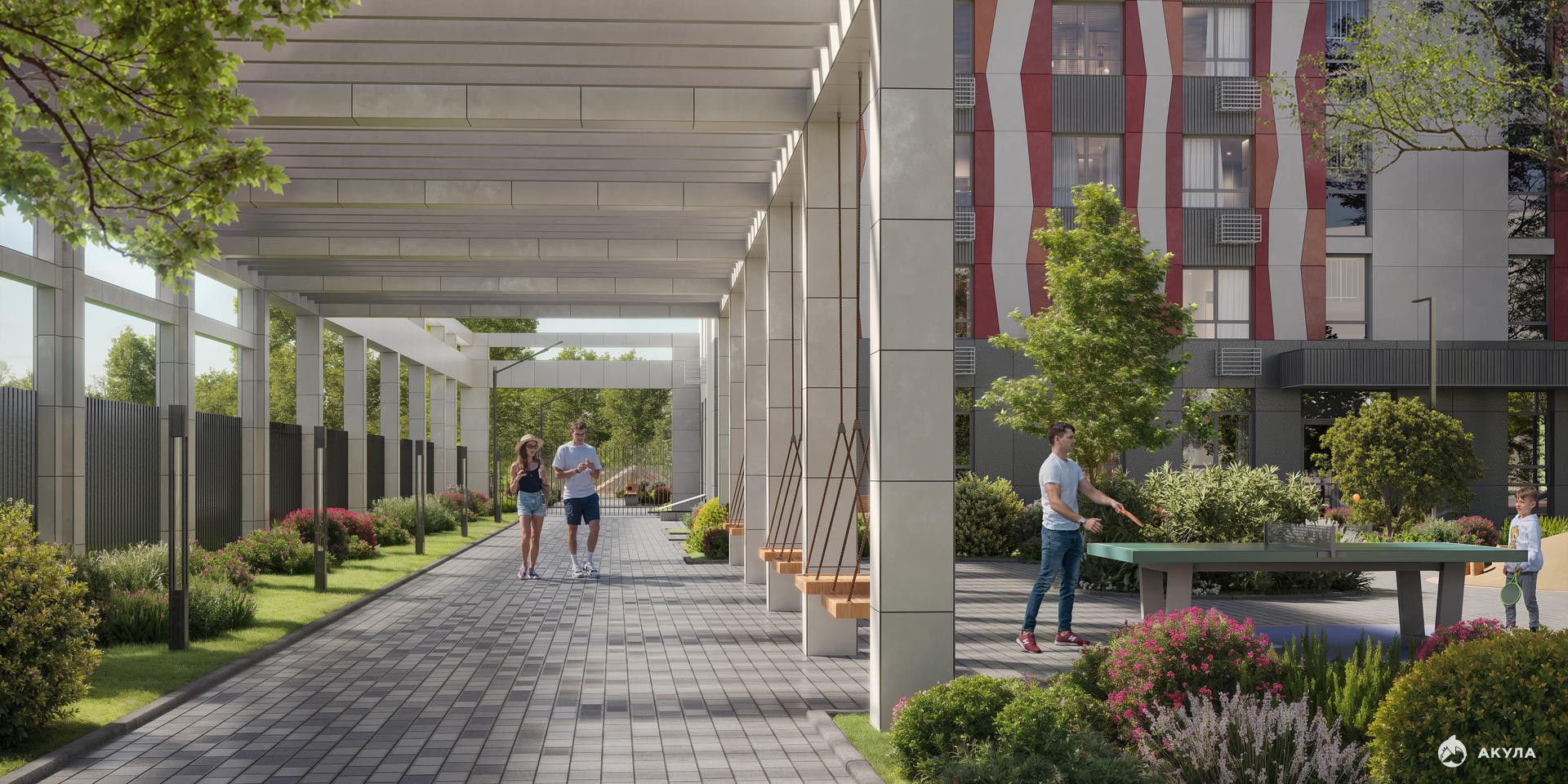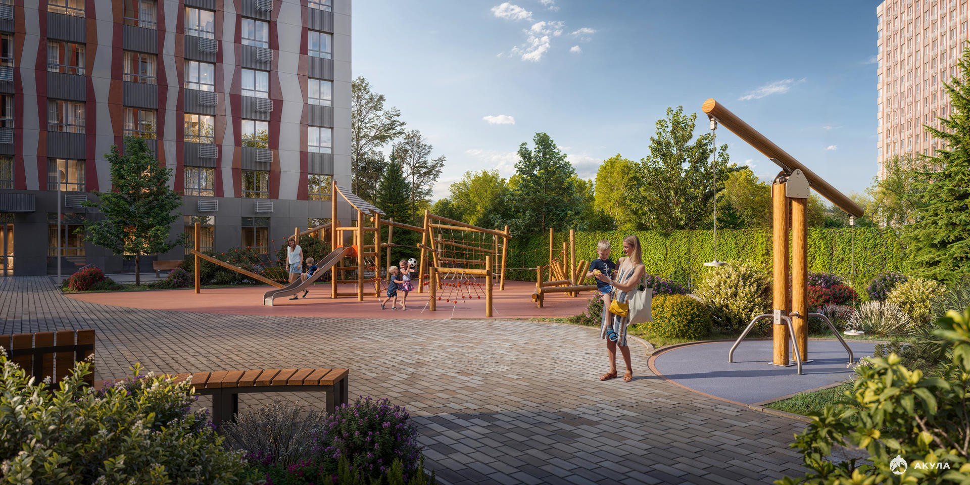 Предусмотрены современные детские площадки для ребят всех возрастов, воркаут-зона, площадка для выгула и тренировки собак. Любители спортивных игр оценят баскетбольную площадку и столы для настольного тенниса.