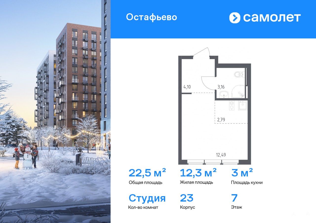 Строим кварталы для жизни с заботой о будущем. Предлагается квартира студия комфорт-класса 22, 54 кв.м в корпусе 23 на 7 этаже, в ЖК «Остафьево»