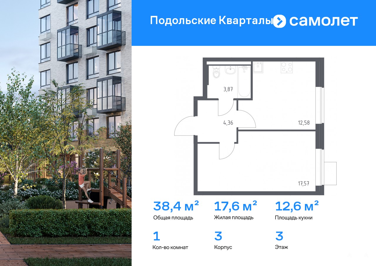 Строим кварталы для жизни с заботой о будущем. Предлагается 1-комнатная квартира комфорт-класса 38, 38 кв.м в корпусе 3 на 3 этаже, в ЖК «Подольские Кварталы»