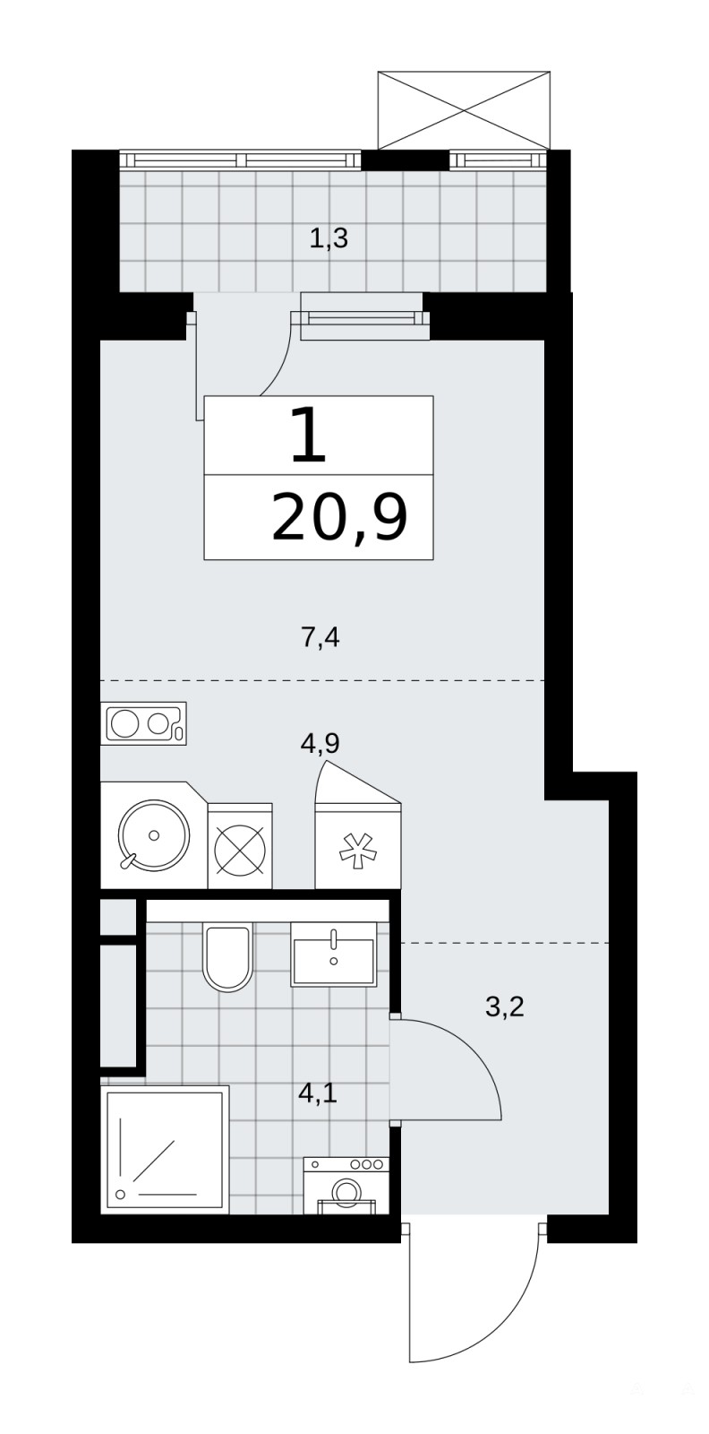 - 7.4 м²