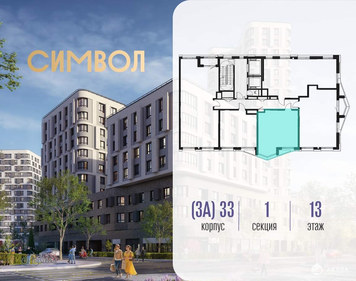 Продается 1-комнатная квартира от застройщика: общая площадь 44.10 м, жилая 16.20 м, кухня 16.60 м, 13-й этаж, жилой квартал «Вдохновение», корпус 33 (секция 1) . Срок сдачи: 4 квартал 2027 года.