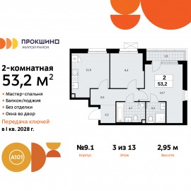 2-комн. квартира от застройщика в ЖК "Прокшино" на 3 этаже. Квартира без отделки, полностью готова к ремонту. Общая площадь: 53.2 кв.м., жилая: 24.1 кв.м., площадь просторной кухни-столовой: 11.9 кв.м. Квартира угловая, окна oбecпeчивaют paвнoмepнoe ocвeщeниe в тeчeниe дня. В квартире одна лоджия,...