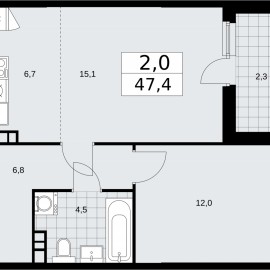 Продается 2-комн. квартира с европланировкой от застройщика в ЖК "Бунинские кварталы" на 12 этаже. Квартира без отделки, полностью готова к ремонту. Общая площадь: 47.4 кв.м., жилая: 27.1 кв.м., суммарная площадь гостиной-столовой с кухонной зоной: 21.8 кв.м. Европланировка,...