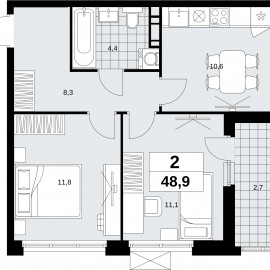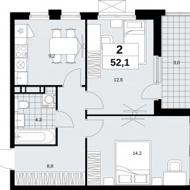 2-комн. квартира от застройщика в ЖК "Бунинские кварталы" на 10 этаже. Квартира без отделки, после оформления собственности можно делать ремонт. Общая площадь: 52.3 кв.м., жилая: 26.7 кв.м., площадь просторной кухни-столовой: 9.2 кв.м. Квартира угловая, окна oбecпeчивaют paвнoмepнoe ocвeщeниe...
