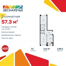 Продается 2-комн. квартира от застройщика с отделкой в ЖК "Деснаречье" на 2 этаже. Общая площадь: 57.3 кв.м., жилая: 28.7 кв.м., площадь просторной кухни-столовой: 10.8 кв.м. Квартира - распашонка, без проходных комнат, окна выходят на paзные стороны дома. В квартире одна лоджия, один...