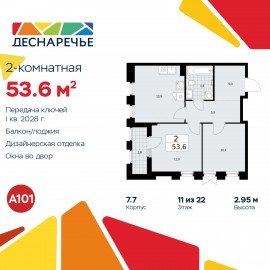 2-комн. квартира с отделкой в ЖК "Деснаречье" на 11 этаже. Общая площадь: 53.6 кв.м., жилая: 22.1 кв.м., площадь просторной кухни-столовой: 13.9 кв.м. Угловая квартира, идеально подойдет любителям тишины и панорамных видов. В квартире одна лоджия, один совмещенный санузел. Высота...
