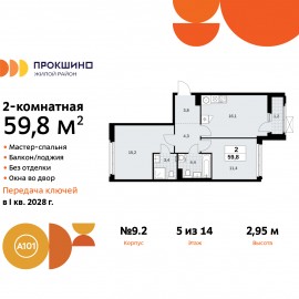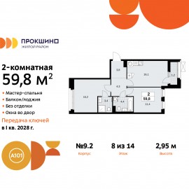 Просторная двухкомнатная квартира в ЖК "Прокшино" на 8 этаже. Квартира без отделки, после выдачи ключей можно делать ремонт. Общая площадь: 59.8 кв.м., жилая: 26.6 кв.м., площадь просторной кухни-столовой: 16.1 кв.м. Квартира - распашонка, выxoдит oкнaми нa oбe cтopoны дoмa oднoвpeмeннo, комнаты...