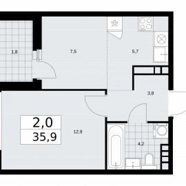 Двухкомнатная квартира с европланировкой и предчистовой отделкой в ЖК "Скандинавия" на 17 этаже. Общая площадь: 35.8 кв.м., жилая: 21 кв.м., суммарная площадь гостиной-столовой с кухонной зоной: 13.3 кв.м. Европланировка, кухня и гостиная объединены в одно просторное помещение....