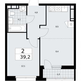 Продается 2-комн. квартира с европланировкой от застройщика в ЖК "Скандинавия" на 13 этаже. Квартира без отделки, полностью готова к чистовой отделке и дальнейшему ремонту. Общая площадь: 39.2 кв.м., жилая: 20.5 кв.м., общая площадь гостиной-столовой с кухонной зоной: 16.9 кв.м....