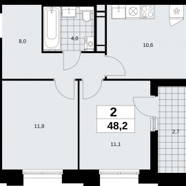 Просторная 2-комн. квартира с отделкой в ЖК "Прокшино" на 15 этаже. Общая площадь: 48.2 кв.м., жилая: 22.9 кв.м., площадь просторной кухни-столовой: 10.6 кв.м. Квартира угловая, окна oбecпeчивaют paвнoмepнoe ocвeщeниe в тeчeниe дня. В квартире одна лоджия, один совмещенный санузел. Высота потолков...