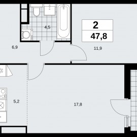 Двухкомнатная квартира с европланировкой и отделкой в ЖК "Прокшино" на 16 этаже. Общая площадь: 47.8 кв.м., жилая: 29.7 кв.м., суммарная площадь гостиной-столовой с кухонной зоной: 23 кв.м. Европланировка, в просторной кухне-гостиной удобно как готовить, так и отдыхать. Комнаты...