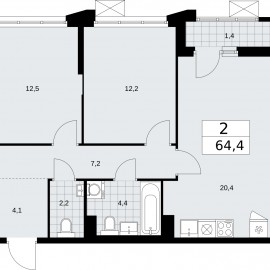 Продается двухкомнатная квартира от застройщика в ЖК "Деснаречье" на 3 этаже. Квартира без отделки, новый собственник может сделать ремонт по индивидуальному дизайн-проекту. Общая площадь: 64.4 кв.м., жилая: 24.7 кв.м., площадь просторной кухни-столовой: 20.4 кв.м. Угловая квартира,...