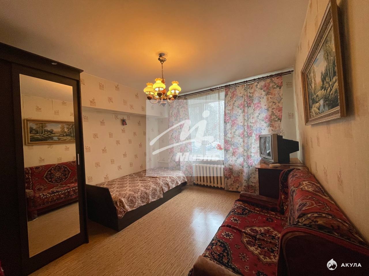 Состояние вполне жилое, остается необходимая мебель. Комнаты изолированы, распашная, санузел раздельный, в кухне достаточно места для семьи.