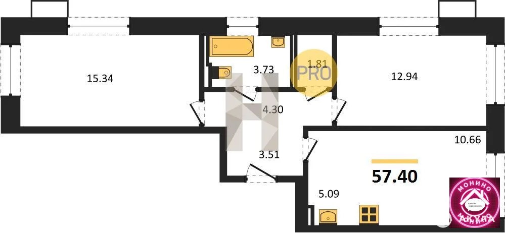 Квартира: 2 к 57, 40 кв.м., 10 этаж в комплексе Квартал Герцена, 1 очередь, корп.1, сдача: 4кв. , этажей: 23, адрес 25-26 км МКАД ул., , Застройщик: Брусника.