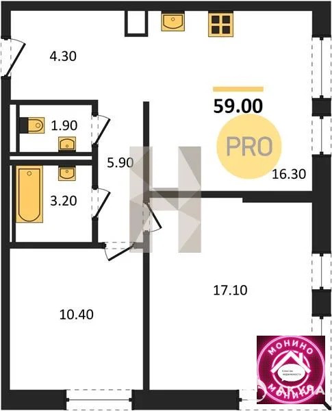 Квартира: 2 к 59, 00 кв.м., 5 этаж в комплексе Квартал Герцена, 1 очередь, корп.1, сдача: 4кв. , этажей: 23, адрес 25-26 км МКАД ул., , Застройщик: Брусника.