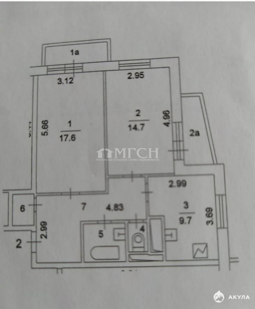 Комнаты 17, 6 + 14, 7 кв.м., кухня 9, 7 кв.м., 2 балкона. Высокий потолок.