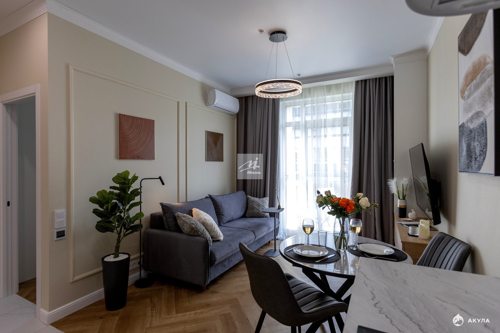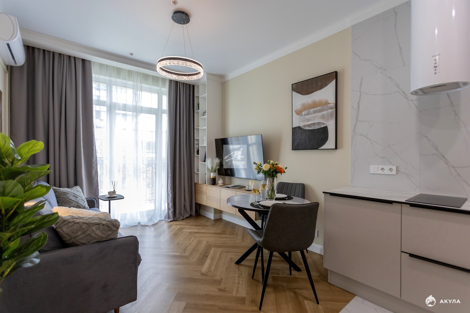 * Квартира-конструктор- пространство разделено на отдельные зоны.