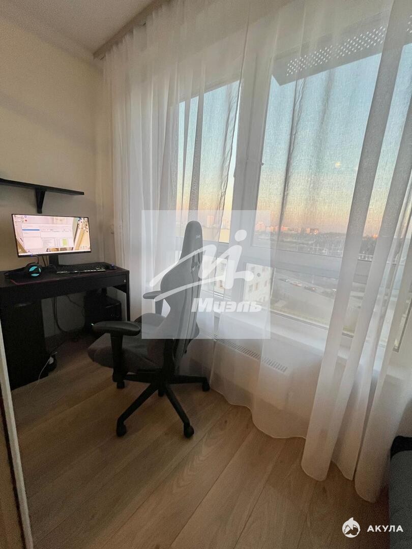 Квартира на 7 этаже, не угловая. Общая площадь — 70 кв. м, жилая площадь — 43 кв. м (комнаты 25 и 18 кв. м), кухня — 15 кв. м. Высота потолков — 2, 65 м. Два санузла — один совмещённый, другой раздельный. Лоджия. Евроремонт. Окна выходят на улицу и во двор.
