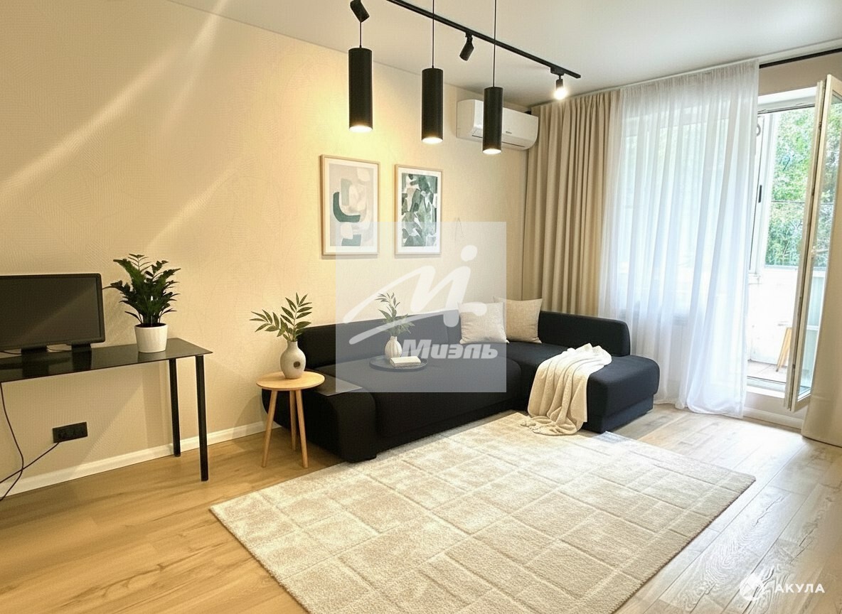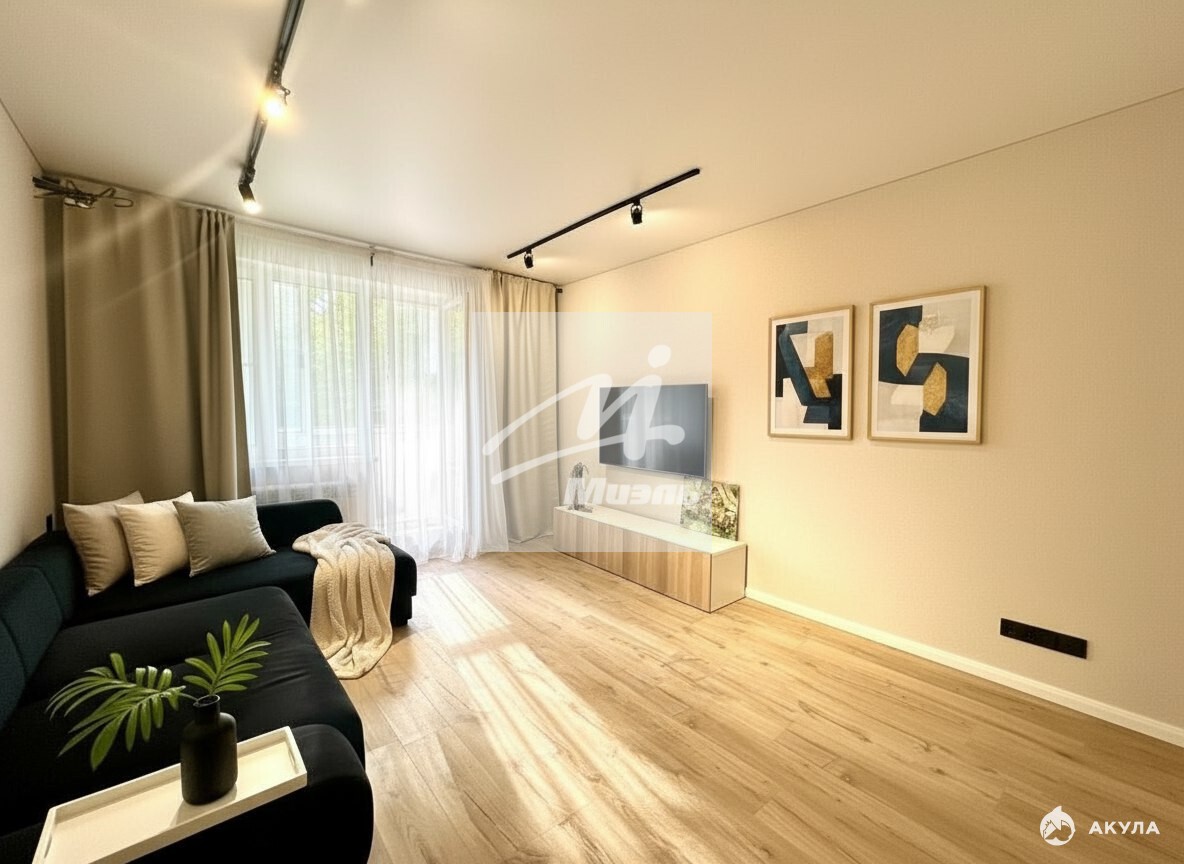 Комнаты изолированы: гостиная (17 м²) с кондиционером, спальня (11, 6 м²) с отдельной гардеробной комнатой, большая вместительная кухня (9, 4 м²). Кухня оборудована всей современной техникой, есть все необходимое для проживания.
