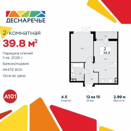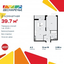 2-комн. квартира с европланировкой и предчистовой отделкой в ЖК "Деснаречье" на 12 этаже. Общая площадь: 39.8 кв.м., жилая: 21.8 кв.м., суммарная площадь гостиной-столовой с кухонной зоной: 17.2 кв.м. Европейская планировка, в просторной кухне-гостиной удобно как готовить, так и...