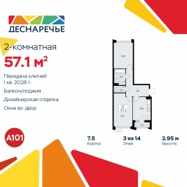 Продается 2-комн. квартира в ЖК "Деснаречье" на 14 этаже. Квартира без отделки, новый собственник может сделать ремонт по индивидуальному проекту. Общая площадь: 58.4 кв.м., жилая: 21.5 кв.м., площадь просторной кухни-столовой: 18.5 кв.м. Комнаты изолированные, все окна выходят на одну...