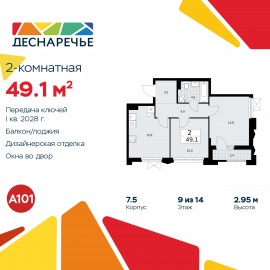 Продается двухкомнатная квартира от застройщика с отделкой в ЖК "Деснаречье" на 9 этаже. Общая площадь: 49.1 кв.м., жилая: 22.8 кв.м., площадь просторной кухни-столовой: 12.6 кв.м. Квартира угловая, идеально подойдет любителям тишины и панорамных видов. В квартире одна лоджия, один...