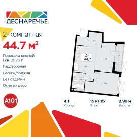 Просторная 2-комн. квартира с европланировкой в ЖК "Деснаречье" на 15 этаже. Квартира без отделки, новый владелец может сделать ремонт по индивидуальному проекту. Общая площадь: 44.7 кв.м., жилая: 21.5 кв.м., общая площадь гостиной-столовой с кухонной зоной: 21.5 кв.м. Европланировка,...