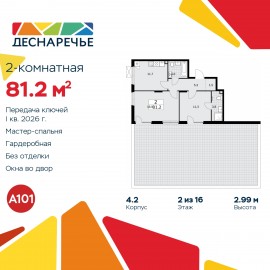 Продается двухкомнатная квартира в ЖК "Деснаречье" на 2 этаже. Квартира без отделки, новый владелец может сделать ремонт по своему проекту. Общая площадь: 81.2 кв.м., жилая: 27.3 кв.м., площадь просторной кухни-столовой: 11.7 кв.м. Квартира угловая, идеально подойдет любителям тишины...