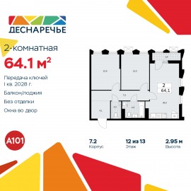 2-комн. квартира в ЖК "Деснаречье" на 12 этаже. Квартира без отделки, полностью готова к чистовой отделке и дальнейшему ремонту. Общая площадь: 64.1 кв.м., жилая: 24.7 кв.м., площадь просторной кухни-столовой: 20.2 кв.м. Квартира угловая, идеально подойдет любителям тишины и панорамных...