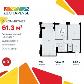Продается 2-комн. квартира от застройщика в ЖК "Деснаречье" на 14 этаже. Квартира без отделки, после получения ключей можно делать ремонт. Общая площадь: 59.2 кв.м., жилая: 27.9 кв.м., площадь просторной кухни-столовой: 14.7 кв.м. Квартира очень светлая, трехсторонняя, планировка...