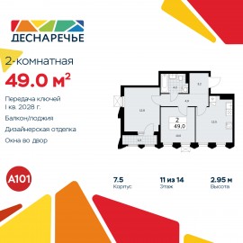 2-комн. квартира с отделкой в ЖК "Деснаречье" на 11 этаже. Общая площадь: 50.7 кв.м., жилая: 22.3 кв.м., площадь просторной кухни-столовой: 17.7 кв.м. Квартира угловая, идеально подойдет любителям тишины и панорамных видов. В квартире одна лоджия, один совмещенный санузел. Высота...