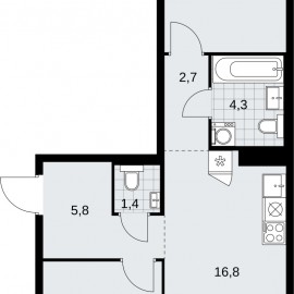 2-комн. квартира от застройщика в ЖК "Деснаречье" на 11 этаже. Квартира без отделки, полностью готова к чистовой отделке и дальнейшему ремонту. Общая площадь: 58.7 кв.м., жилая: 28 кв.м., площадь просторной кухни-столовой: 14.7 кв.м. Квартира - распашонка, очень светлая, без проходных...