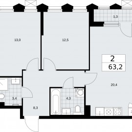 2-комн. квартира в ЖК "Деснаречье" на 11 этаже. Квартира без отделки, после оформления собственности можно делать ремонт. Общая площадь: 63.2 кв.м., жилая: 25.5 кв.м., площадь просторной кухни-столовой: 20.4 кв.м. Комнаты изолированные, все окна выходят на одну сторону. В квартире одна...