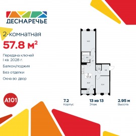 Двухкомнатная квартира от застройщика в ЖК "Деснаречье" на 13 этаже. Квартира без отделки, полностью готова к чистовой отделке и дальнейшему ремонту. Общая площадь: 57.8 кв.м., жилая: 25.4 кв.м., площадь просторной кухни-столовой: 16.9 кв.м. Квартира - распашонка, без проходных комнат,...