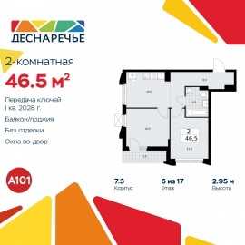 Двухкомнатная квартира в ЖК "Деснаречье" на 6 этаже. Квартира без отделки, после оформления собственности можно делать ремонт. Общая площадь: 46.5 кв.м., жилая: 22.2 кв.м., площадь просторной кухни-столовой: 10.2 кв.м. Квартира угловая, идеально подойдет любителям тишины и...