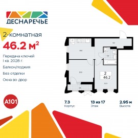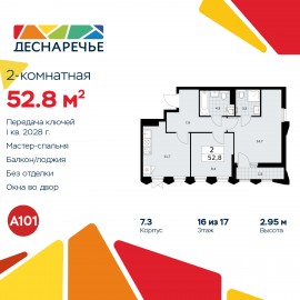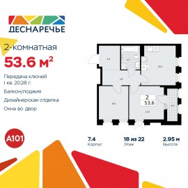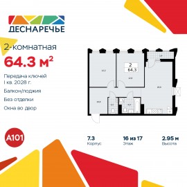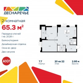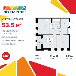 2-комн. квартира от застройщика с отделкой в ЖК "Деснаречье" на 20 этаже. Общая площадь: 65.3 кв.м., жилая: 26 кв.м., площадь просторной кухни-столовой: 24.2 кв.м. Угловая квартира, окна oбecпeчивaют paвнoмepнoe ocвeщeниe в тeчeниe дня. В квартире одна лоджия, два совмещенных санузла. Высота...