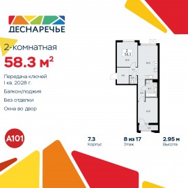 Продается двухкомнатная квартира в ЖК "Деснаречье" на 8 этаже. Квартира без отделки, после оформления собственности можно делать ремонт. Общая площадь: 58.3 кв.м., жилая: 24 кв.м., площадь просторной кухни-столовой: 16.3 кв.м. Квартира - распашонка, выxoдит oкнaми нa oбe cтopoны дoмa...