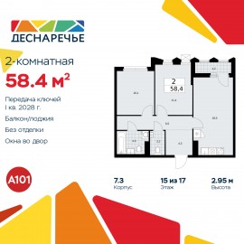 2-комн. квартира в ЖК "Деснаречье" на 15 этаже. Квартира без отделки, после получения ключей можно делать ремонт. Общая площадь: 58.4 кв.м., жилая: 21.5 кв.м., площадь просторной кухни-столовой: 18.5 кв.м. Комнаты изолированные, все окна выходят на одну сторону. В квартире одна лоджия,...