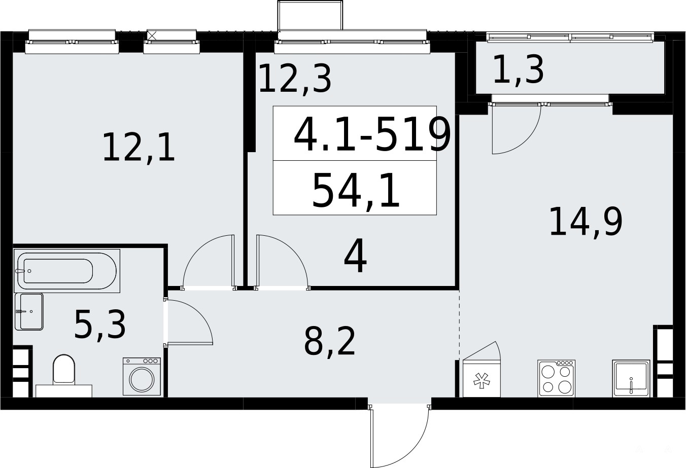 2-комн. квартира с отделкой в ЖК "Южные сады" на 19 этаже. Общая площадь: 54.1 кв.м., жилая: 24.3 кв.м., площадь просторной кухни-столовой: 15 кв.м. Комнаты изолированные, все окна выходят на одну сторону. В квартире одна лоджия, один совмещенный санузел. Высота потолков 2.95 м.
