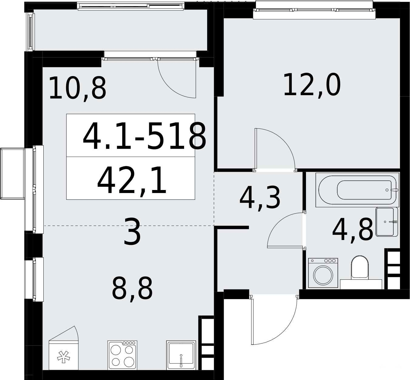 Дом монолитный, черырехподъездный, переменной этажности, от 11 до 30 этажей. Квартира находится в 4-й секции высотой 22 этажа в корпусе 4.1.2. На этаже 6 квартир. В подъезде 1 пассажирский и 1 грузовой лифт. Начало строительства - 2 квартал 2024 года. Окончание строительства - 2 квартал 2027 года. Оформление сделки по договору долевого участия.