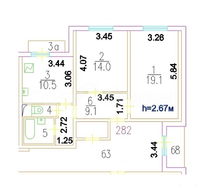 • Комнаты: 19, 1 м² и 14 м² — классика жанра, когда можно жить и не мешать друг другу.