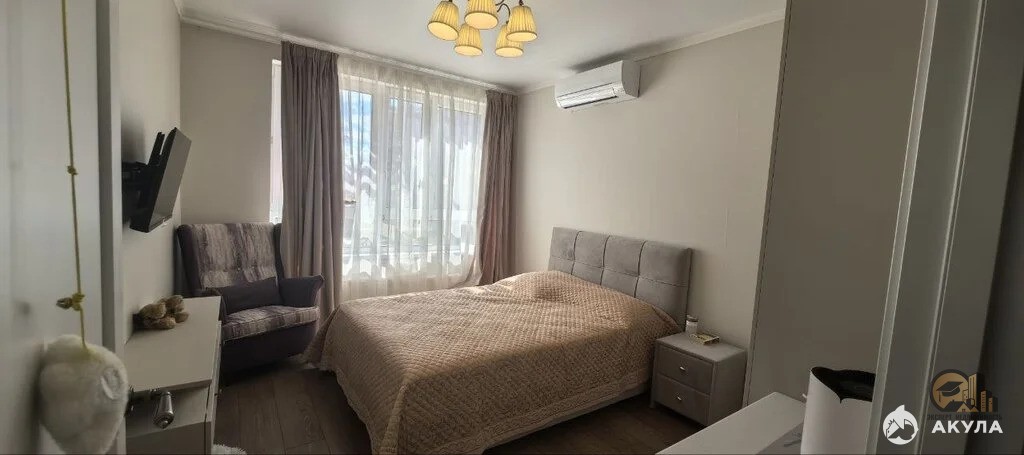 Оборудованная гардеробная комната. Два кондиционера. Домофон. Рядом парки с прогулочными дорожками площадками для спорта, лавочками.