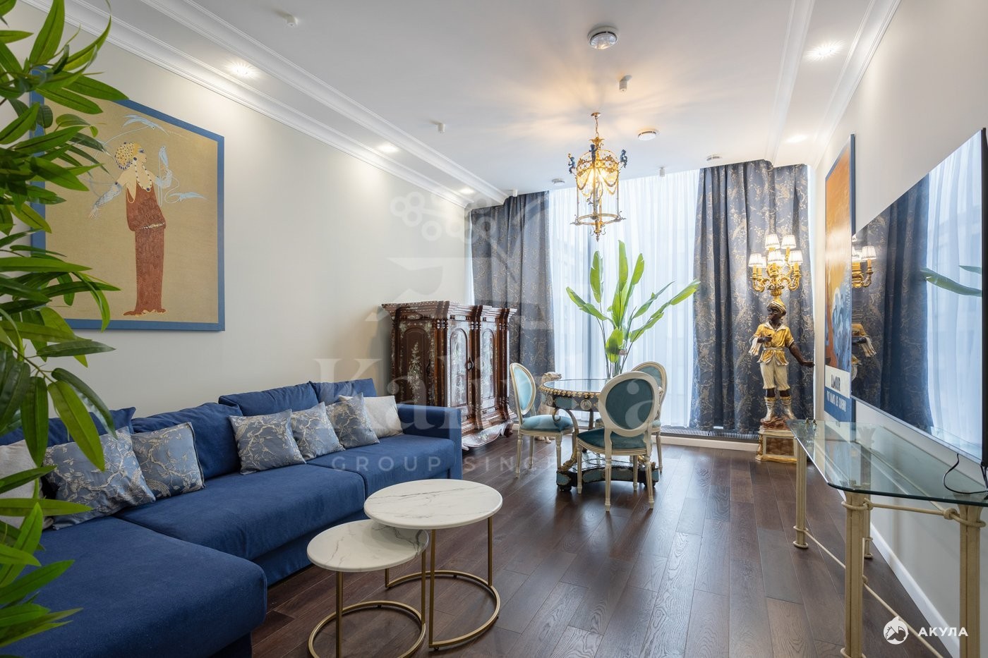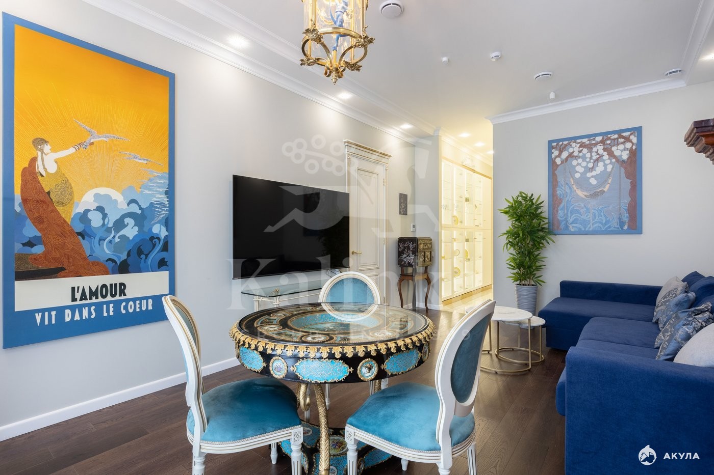 Жилой комплекс расположен всего в 5 минутах пешком от станции метро "Маяковская". Общая площадь составляет 80 кв. м. Апартаменты находятся на 10 этаже 12-этажного дома, а высота потолков достигает 3, 3 метра.
