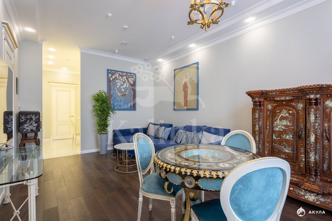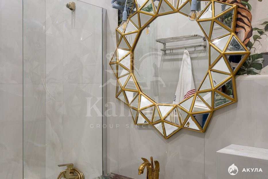 Отделка выполнена в стиле Old Money с просторной кухней, тремя гардеробными и двумя санузлами, что соответствует всем современным тенденциям. В отделке кухни и санузлов использованы только натуральные материалы: мрамор, оникс и кварцит. Во входной группе на полу — мраморная мозаика из редких пород камня.